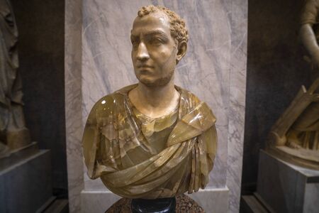 Alexandria, Egypt - November 03, 2021: Ancient Exhibits in the Alexandria National Museum - Marble and Stone Statues, Books, Medieval Decoration and Roman Tableware