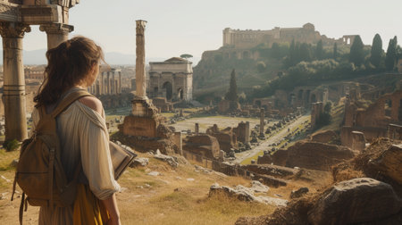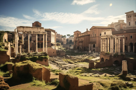 panoramic view of roman forum ruins in daylight, created with generative ai