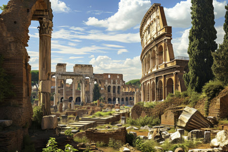 Rome skyline depicting the Colosseum and ancient ruins AI generated
