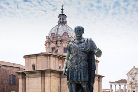 ROME, ITALY - MAY 3, 2019: Bronze monumental statue of Caesar in Rome, Italy in spring