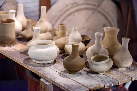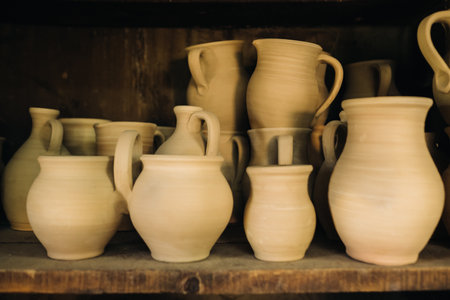 Discover a cozy pottery workshop filled with an array of handcrafted clay vessels, showcasing the beauty of rustic craftsmanship and artistic tradition.