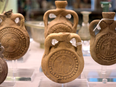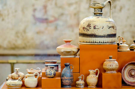 Malaga, Spain - October 21, 2023:Various mixed pottery artifacts at Malaga museum, Spain.