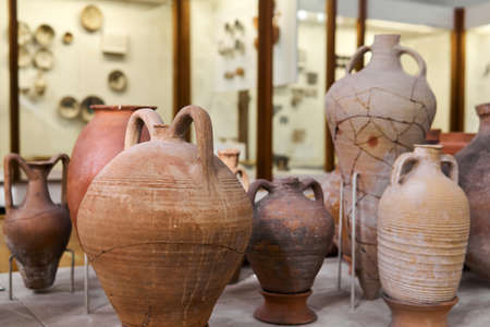 Sevastopol, Crimea - January 31, 2021: ancient greek amphorae in the interior of the museum of antiquity