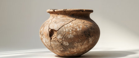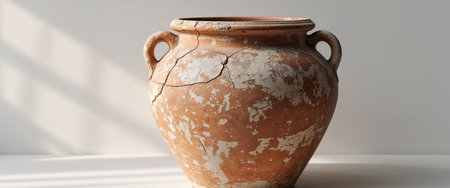 AI Generated. Ancient Clay Pot with Cracks and Weathered Surface Displays History