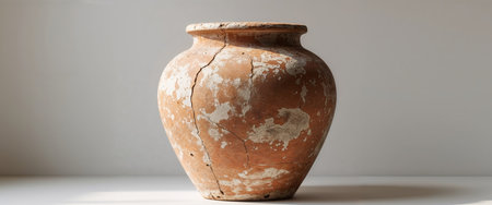 AI Generated. Ancient Terracotta Jar with Cracked Surface and Rustic Finish