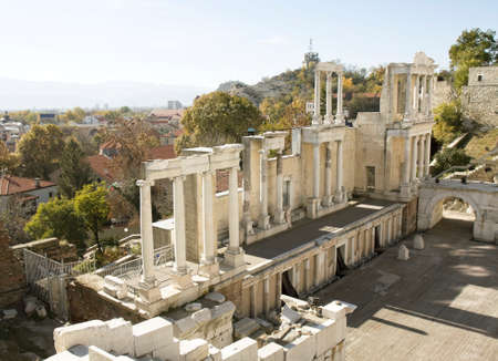 Ruins of ancient theatre in town Plovdiv, Bulgaria.