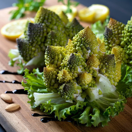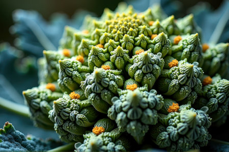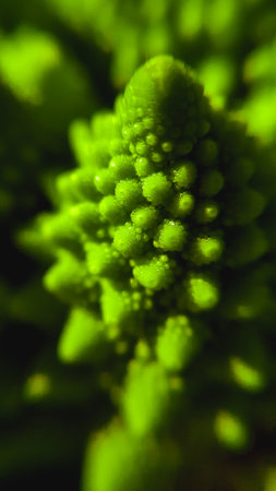 Close-up of vibrant romanesco cauliflower with intricate patterns and texture. That the image is generated using AI.
