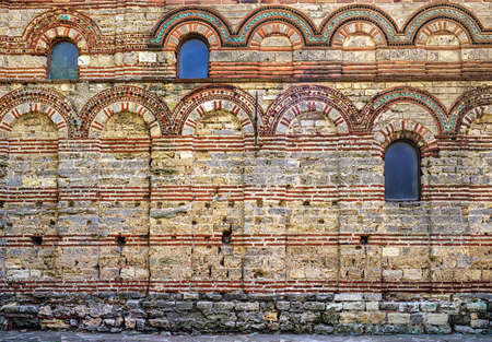 Detail of a Curch in Nessebar, Black Sea coast. The Wall of the ancient Church of Christ Pantocrator in Nessebar in Nessebar, near Sunny Beach resort, Bulgaria