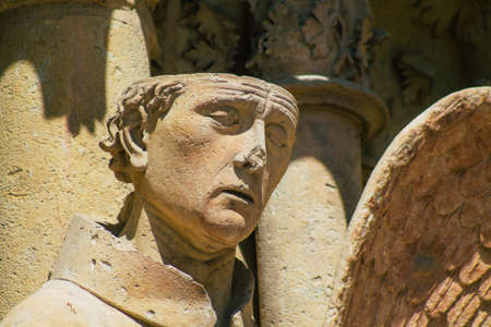 Reims France September 04, 2020 View of the exterior facade of the Roman Catholic Notre Dame de Reims Cathedral, a historical monument in the Grand Est region of France and one of the oldest in Europe