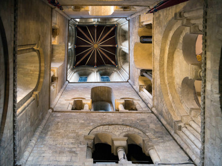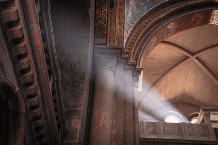 Zamora, Spain - April 7, 2023: Interior view of the dome of the romanesque Cathedral of Zamora. Telephoto lens