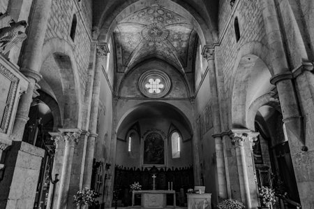 Interior of the main nave of the Cathedral Basilica of San Sabino in Bari.