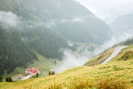 Landscape from Bucegi Mountains, part of Southern Carpathians in Romania in a foggy and rainy day