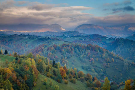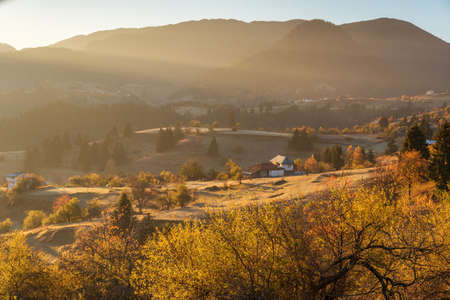 Beautiful landscape in autumn colors, at sunrise, in Transylvania