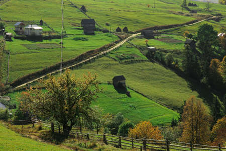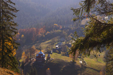 Colorful autumn landscape in the mountain village, morning in the Carpathian mountains. Transylvania,Romania Europe.