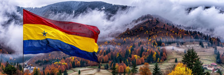 vibrant flag of Guinea waves proudly in front of a towering mountain backdrop, symbolizing national pride and strength.