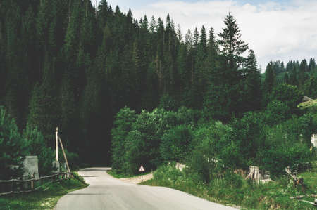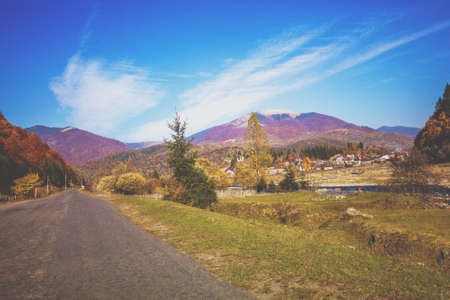 View of the mountain road in autumn. Carpathian mountains. Ukraine