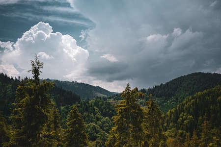 Panoramic view from Bila Kobyla mountain in Carpathian, Ukraine