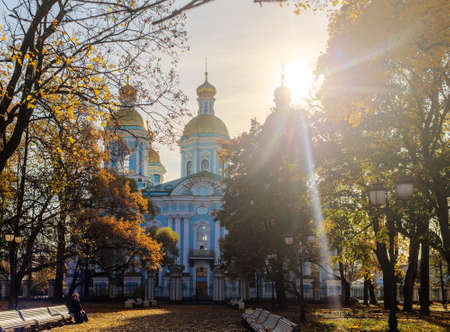 Saint-Petersburg, Russia - 15 October 2014: view of the St. Nicholas Cathedral in autumn