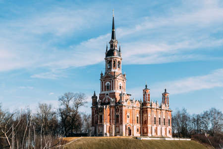 MOSCOW RUSSIA Ostankino park in winter, snow time in russian, church in day