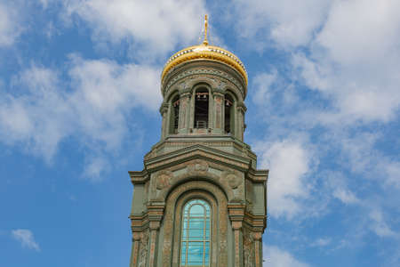 Golden dome of the Orthodox church in Central Russia on the blue sky background.