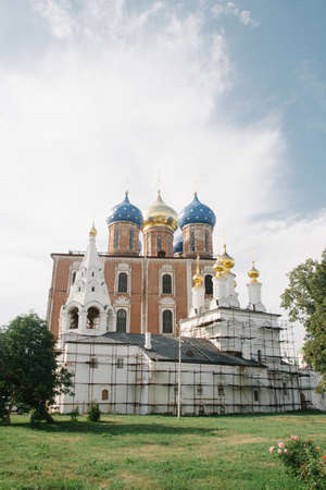 08.21.2021, Russia, Ryazan. Reconstruction of the architectural monument of the Assumption Cathedral in the Kremlin