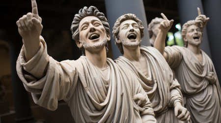 A magnificent close-up of ancient sculptures showcasing the intricate details and expressions of aristocratic figures, emphasizing the artistry and historical significance of stone craftsmanship.