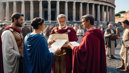 Roman senators stood on the streets of Rome with togas and documents