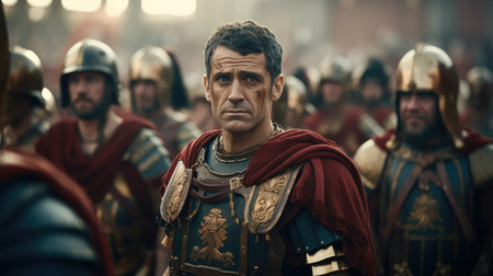 Julius Caesar. Roman soldiers. Photorealist historic scene