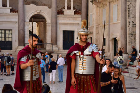 Split, Croatia - September 5 2021: Roman soldiers in the Diocletian palace
