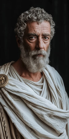 Roman merchant in finely woven toga conducting trade negotiations