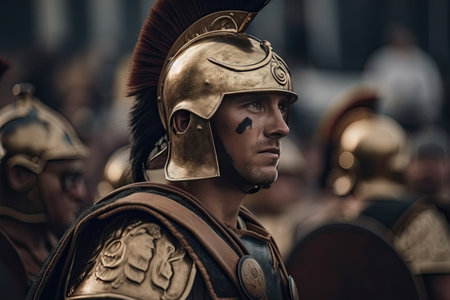 Portrait of roman soldier. Ancient warrior in battle. Generative AI