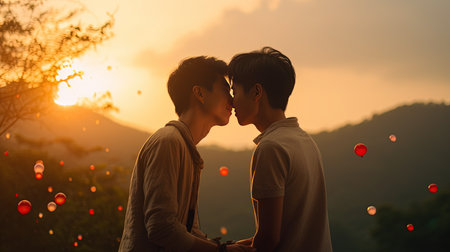Asian young love gay couple. Kissing. Love concept
