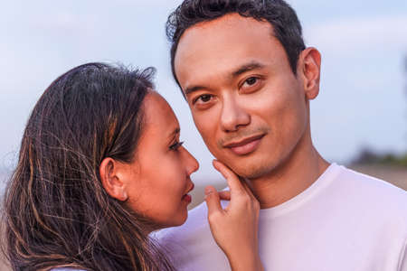 couple and family concept -close up portrait of young malaysian couple in love outdoor