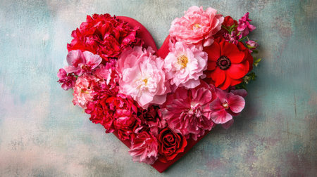 This captivating heart-shaped arrangement showcases vibrant red flowers surrounded by lush green foliage on a clean white background, perfect for conveying love and beauty.
