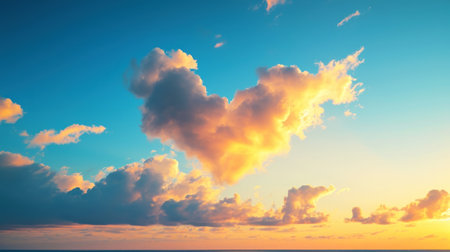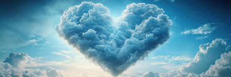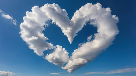 A heart shaped cloud in blue sky evokes feelings of love and serenity