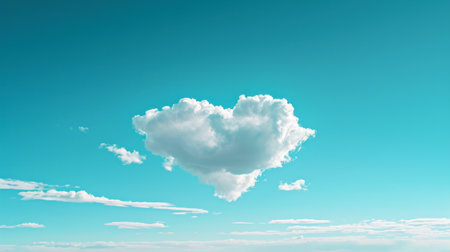 A solitary heart-shaped cloud floats serenely against a vast, clear blue sky. The fluffy white cloud forms a perfect heart, symbolizing love and tranquility. The image captures a moment of peaceful beauty and natural artistry.