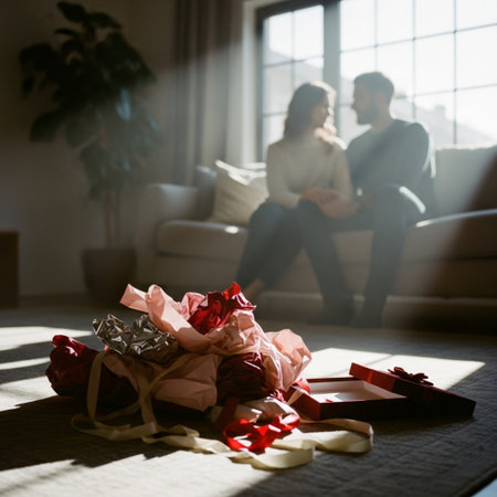 a young couple celebrates Christmas together, Christmas surprise
