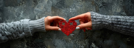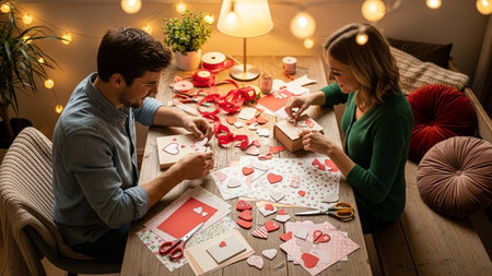 Couple making a heart-shaped greeting card for Valentine's Day
