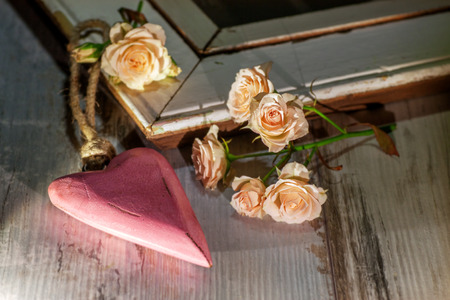 Background Valentine's Day. heart and roses on a wooden background