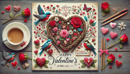 Roses, balloons, and a Happy Valentine's Day sign create a festive Valentine's Day scene