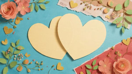 A top view of a glowing heart sticker sheet lying on a craft table