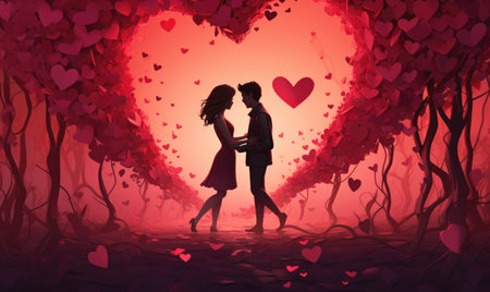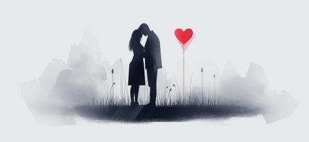 A romantic silhouette of a couple standing close, framed by a soft, heart-shaped background. This image captures love, connection, and intimacy, ideal for expressing emotions and relationships.