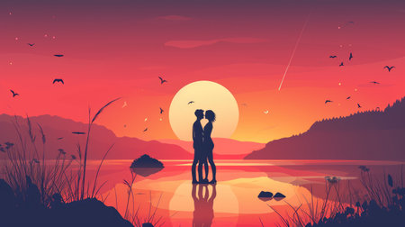 Sunset embrace in a warm summer evening with vibrant colors and peaceful surroundings.