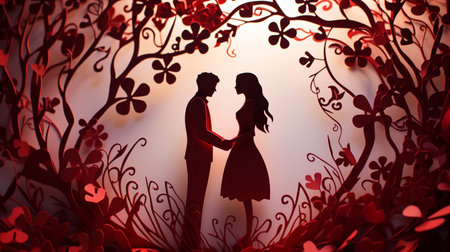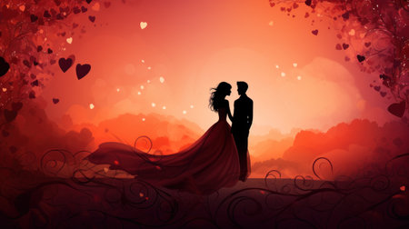 valentines day card love red heart warm and passion concept couple of lovers silhouette