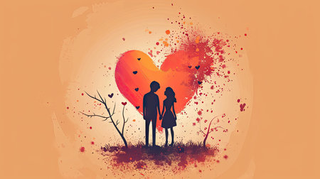 A romantic silhouette of a couple standing close, framed by a soft, heart-shaped background. This image captures love, connection, and intimacy, ideal for expressing emotions and relationships.