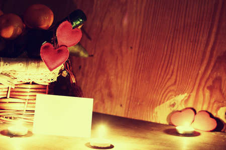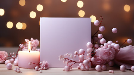 Blank Valentine's Day Card with Heart Decorations and Candles Creating a Romantic Atmosphere Concept of Love Romance Greeting Card Design.