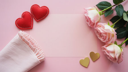 Romantic valentine's day setup with roses and hearts