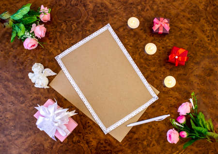 Floral frame with paper and roses for romantic design