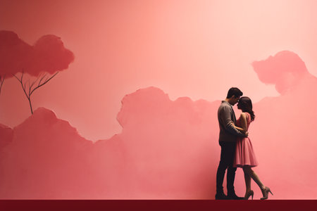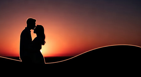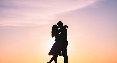 A romantic silhouette of a couple standing close, framed by a soft, heart-shaped background. This image captures love, connection, and intimacy, ideal for expressing emotions and relationships.