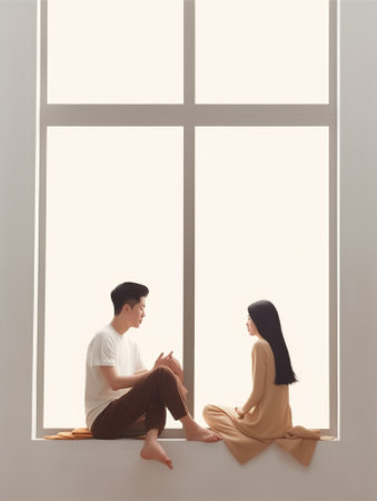 Observational Asian couple watch sea banner. Happy life. Generate Ai